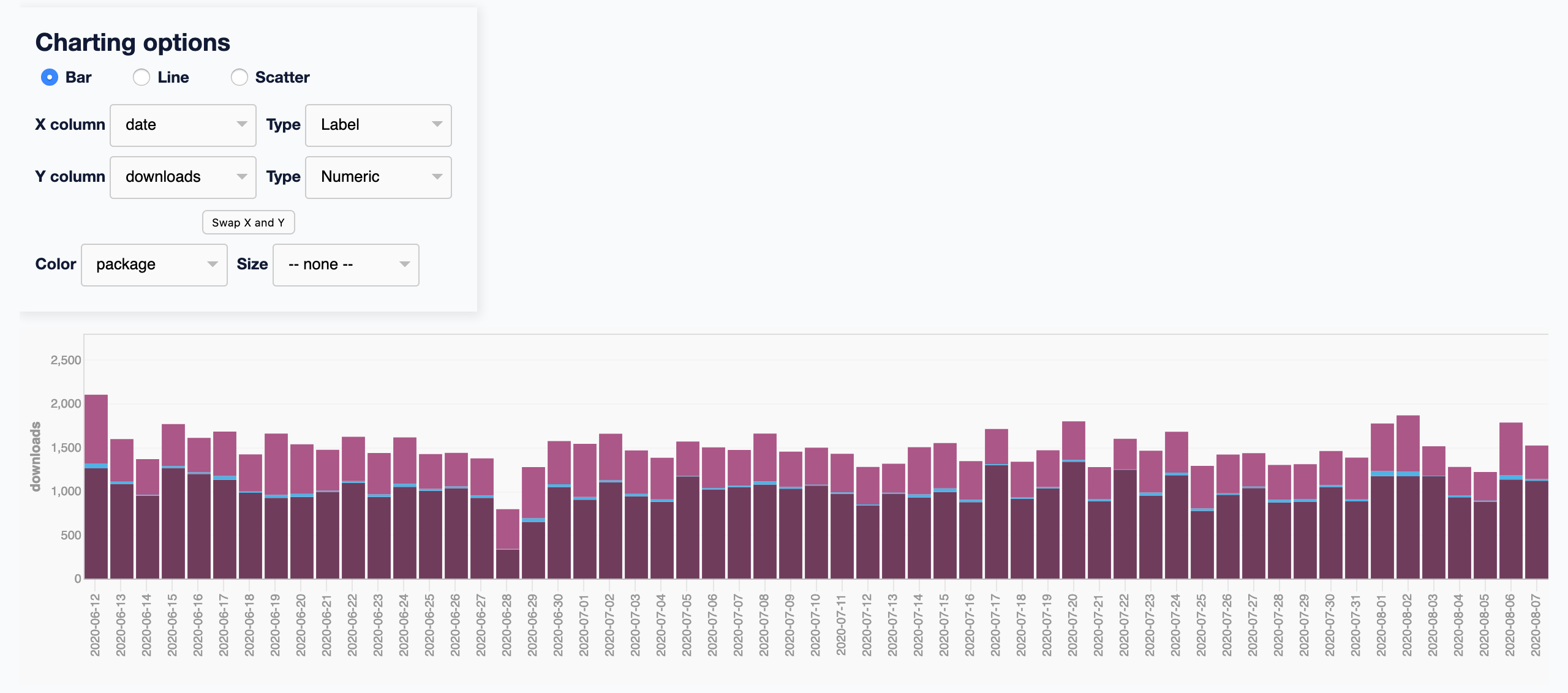 | MDEwOlJlcG9zaXRvcnkxMzg2Njk2NzM= | simonw/datasette-vega | 2018-06-26T01:40:54Z | https://repository-images.githubusercontent.com/138669673/58bcca00-3af8-11eb-982a-e4f24d8bbeb9 | 1 | 33 | 11 | 3 | ["datasette", "vega", "react", "plugin", "datasette-plugin", "datasette-io"] | 00de059ab1ef77394ba9f9547abfacf966c479c4 |